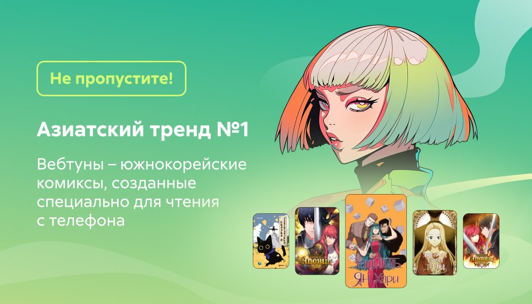 Вебтуны – цифровые комиксы, которые изначально создавались для чтения на телефоне. Они выходят по главам в интернете. Читаются вертикальной лентой, словно бесконечная история, которую листаешь одним движением пальца. Благодаря яркой рисовке, динамичным сюжетам и удобному формату вебтуны быстро стали популярны во всём мире – как сериал, от которого трудно оторваться.