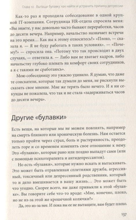 Так что редакторы того сайта были правы, выдавая ее в числе первых, для знакомства с темой депрессии и понимания, что делать, если случился эпизод, эта книжка-поддержка вполне подойдет.