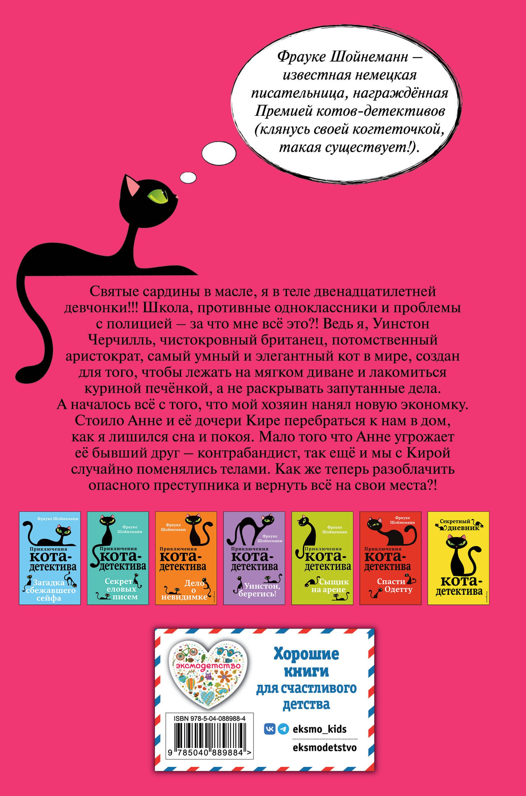 Серия о коте Уинстоне — супербестселлер в России и в мире! Эти книги помогли сотням тысяч детей полюбить чтение! Прекрасный юмор, захватывающий сюжет, много тайн и загадок! А в главного героя, усатого детектива Уинстона Черчилля, невозможно не влюбиться! Он такой пушистый, элегантный и умный.
