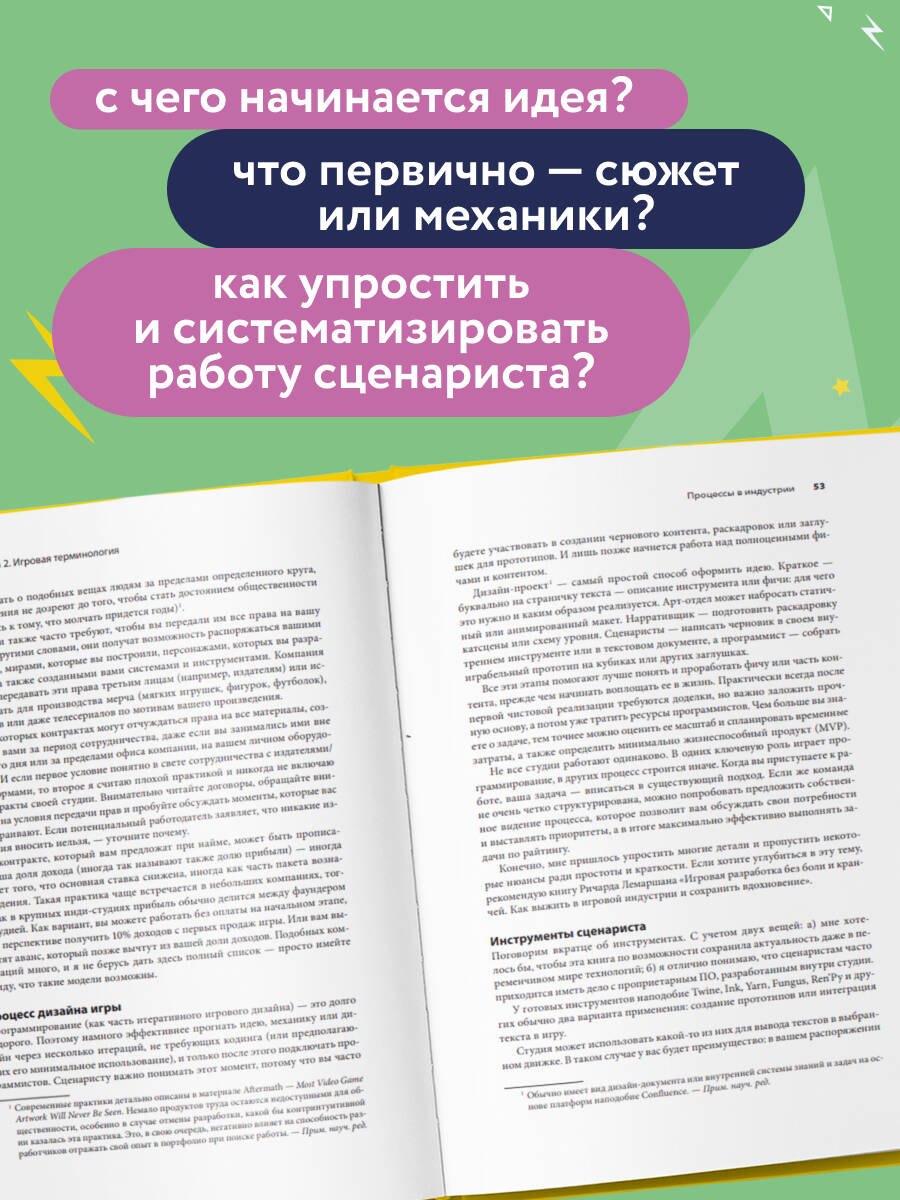 Эта книга — проводник в профессию игрового сценариста, практическое руководство с фокусом на инди-производство и реальную студийную работу. Автор разграничивает сценаристику и нарративный дизайн, показывает их зоны ответственности и объясняет, почему важнее не «магия» сюжета, а ремесло — понятные инструменты, структура и процессы.