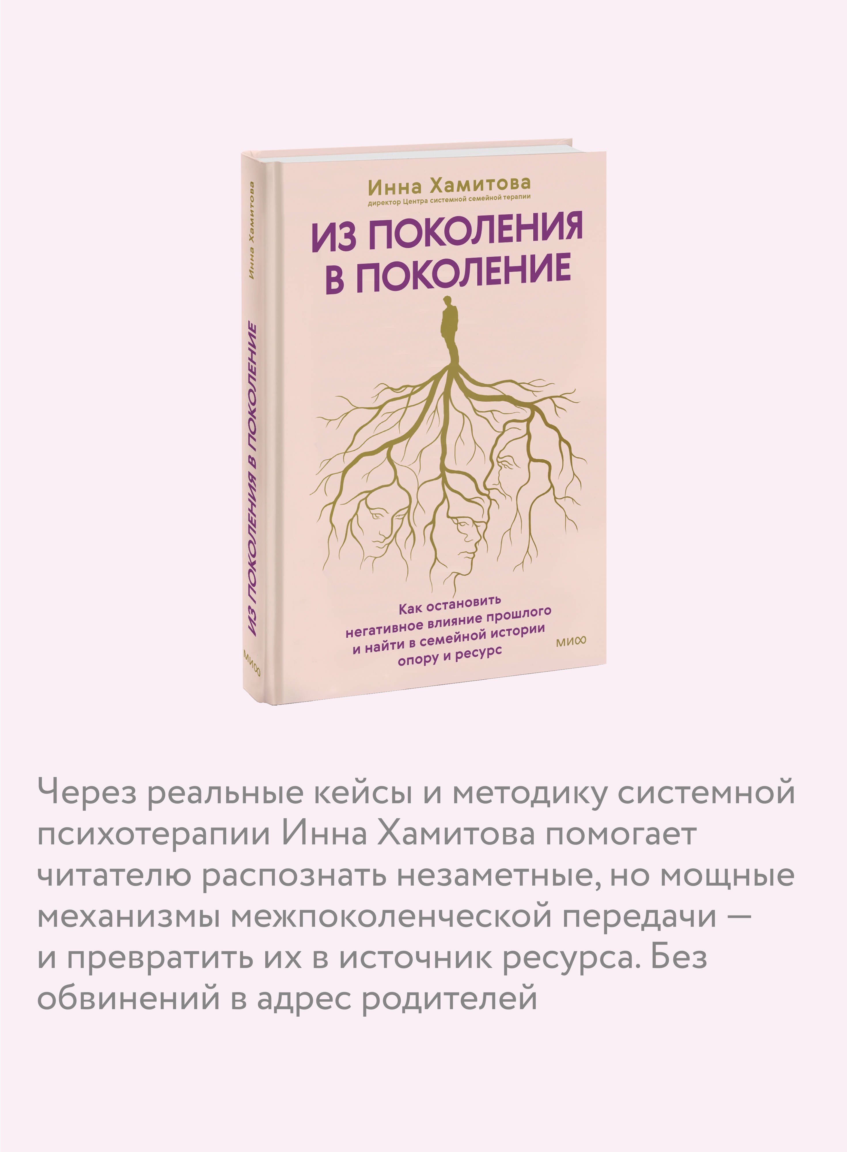 Инна Хамитова — клинический психолог и системный семейный психотерапевт с тридцатилетним стажем, директор Центра системной семейной терапии. В этой книге она показывает, как повторяющиеся конфликты, скрытые семейные мифы, неосознаваемые установки передаются из поколения в поколение и влияют на текущую жизнь: отношения, выбор профессии, финансы, мировоззрение и не только.