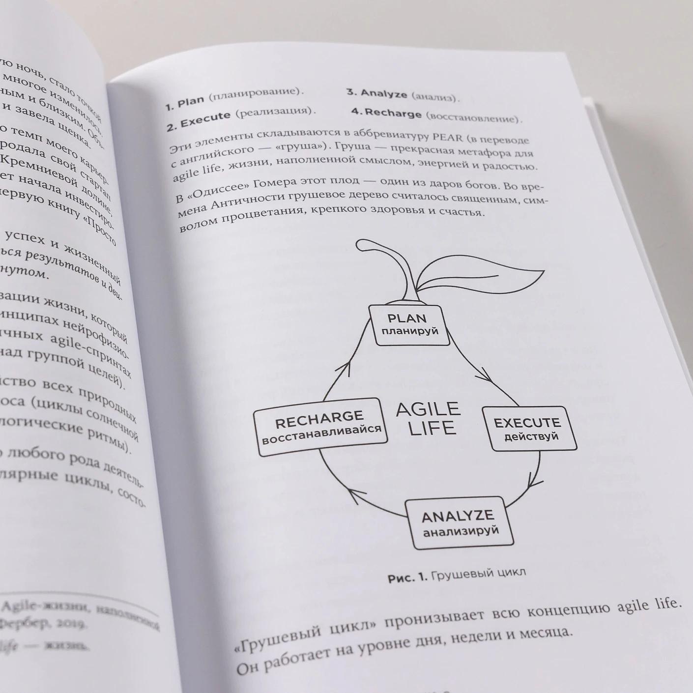 Метод agile life предполагает поэтапное движение к целям без насилия над собой и основан на новейших исследованиях в области нейрофизиологии, методах самокоучинга и использовании цикличных agile-спринтов. В нем заложена идея, что любого рода деятельность должна представлять собой регулярные циклы, состоящие из четырех элементов: Plan (планирование), Execute (реализация), Analyze (анализ) и Recharge (восстановление). Каждому элементу цикла посвящен раздел книги.