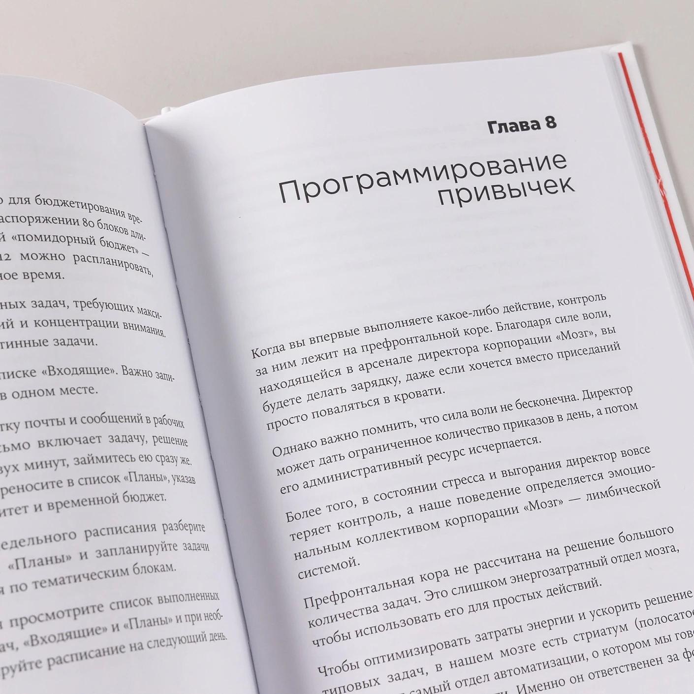 Для эффективного управления задачами автор предлагает сформировать общую структуру дня и недели. Рабочий процесс советует делить на 25-минутные блоки сфокусированной работы и 5-минутные перерывы между ними. Приоритетные задачи рекомендует выполнять в первой половине дня, когда наш мозг наиболее продуктивен, а рутинные можно оставить на послеобеденное время.