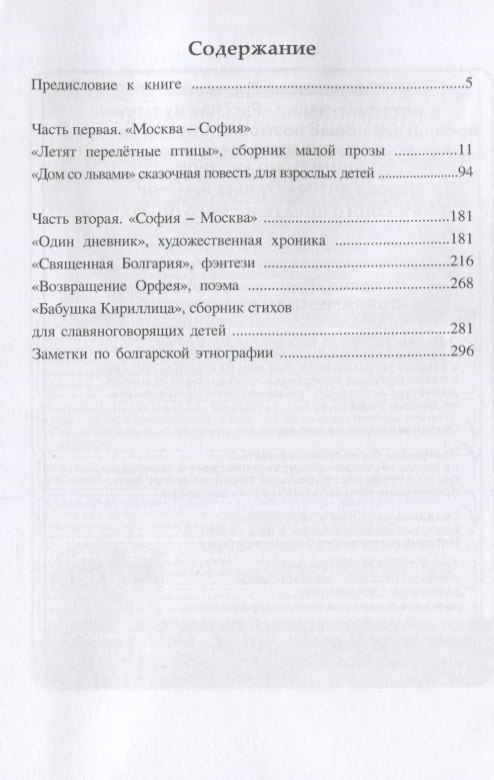 Сборник различных по жанру произведений прозы и поэзии предназначен для семейного чтения. Познавательные детские стихи о современных игрушках и законах физики — для дошкольного и младшего школьного возраста. Повести и рассказы в стиле ретро — для старшего поколения. Поэма «Возвращение Орфея», «Один дневник», и постмодерн в «Доме со львами» и «Священная Болгария» — для среднего поколения. Книга награждена литературным Орденом Св. Кирилла и Мефодия за значительный вклад в укрепление взаимопонимания между народами.