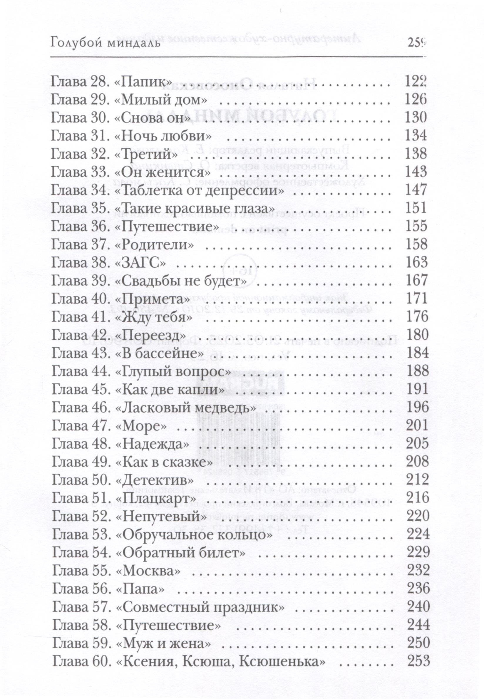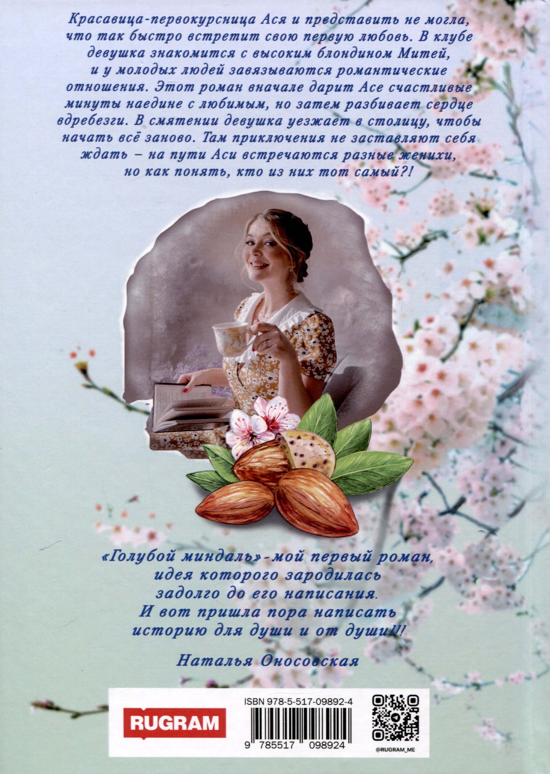 Книга "Голубой Миндаль" - это трогательная история о пути к самопознанию и нахождении настоящей любви. Читая книгу возникают свои мысли и эмоции, связанные с переживаниями главной героини. В целом, книга оставляет глубокое впечатление и я рекомендую всем любителям романтической литературы.