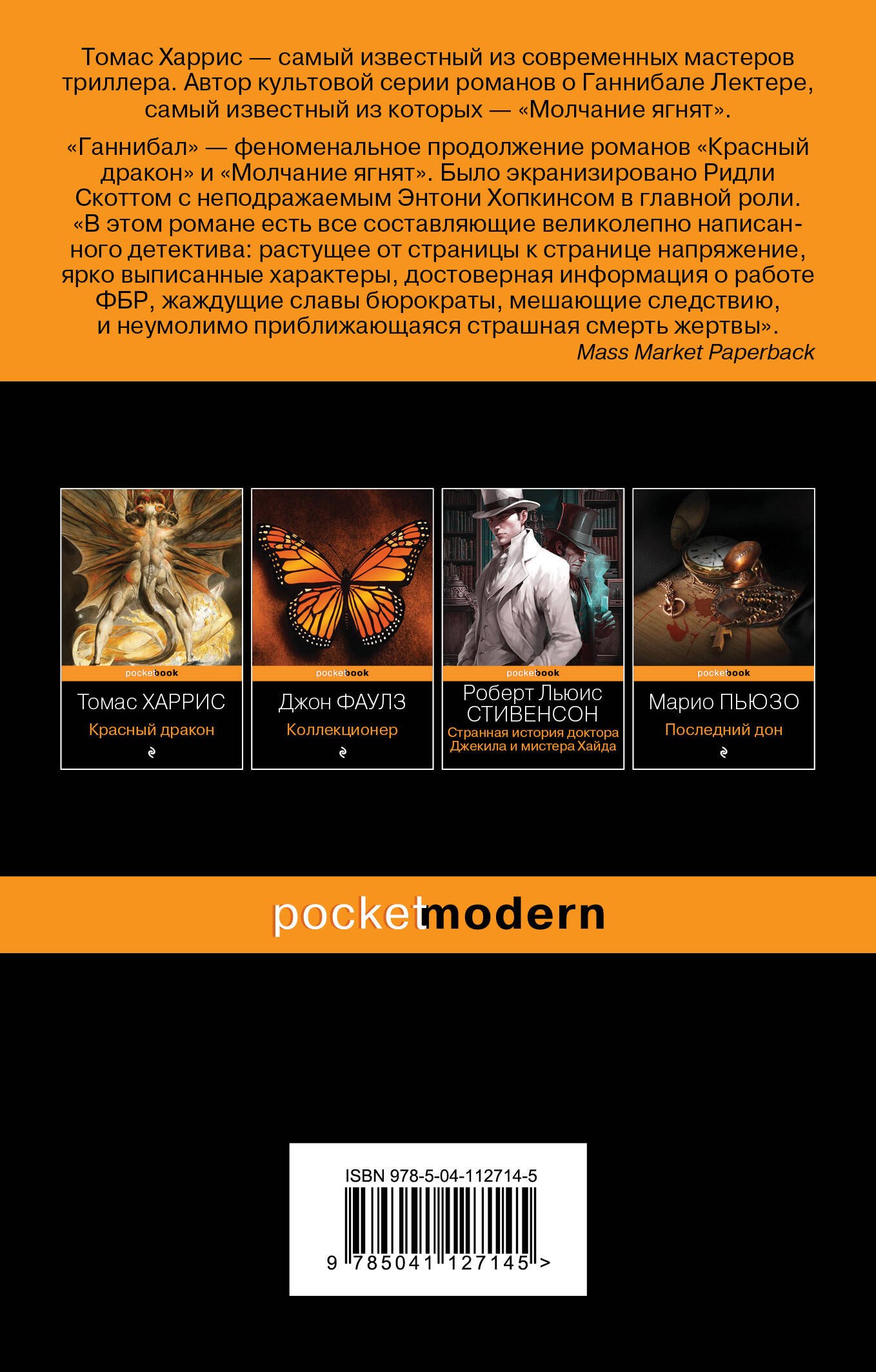 Мы уже прекрасно знаем этот истинный шедевр жанра , но напоминать о Ганнибале , видимо , периодически всё же следует. Несмотря на удачную экранизацию с неподражаемым Энтони Хопкинсом читать книгу ( и перечитывать ) очень рекомендую.Освежает нервную систему и лечит душу. Вот такая это волшебная вещь!