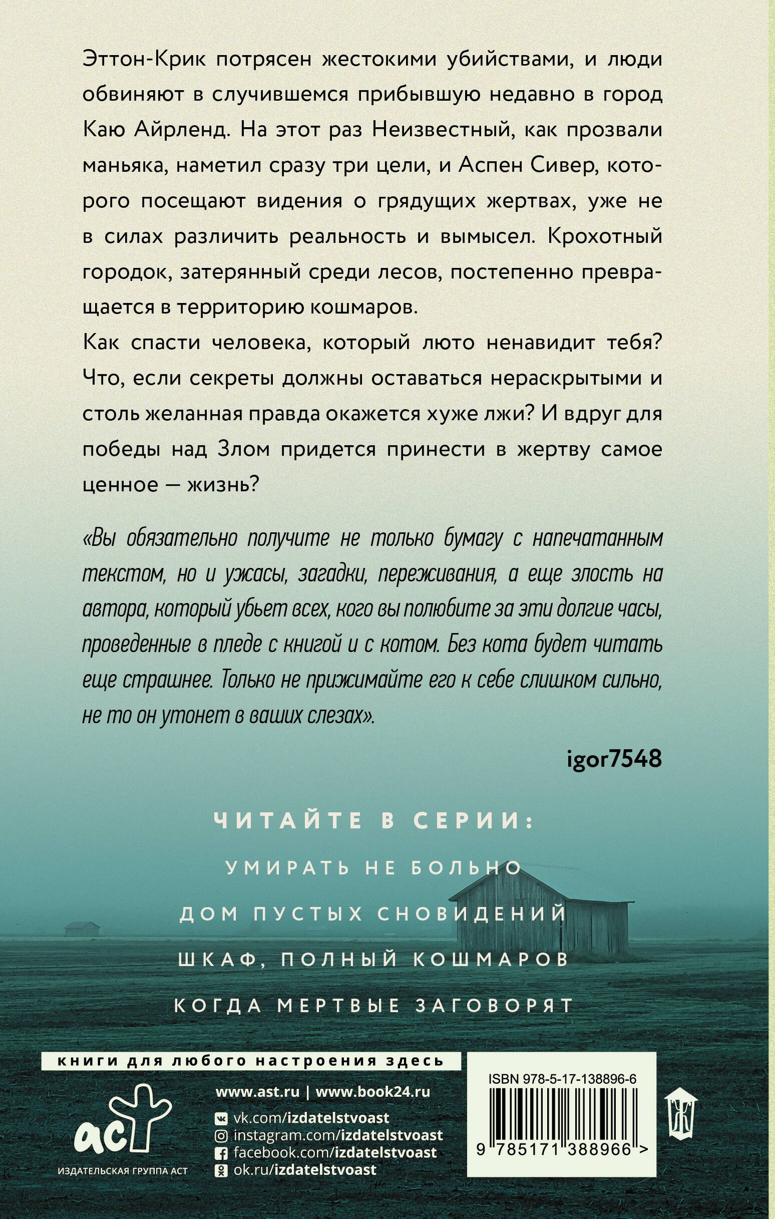 ИТОГ: Ну я не знаю, что сказать. Я снимаю перед автором свою шляпу. С этих пор я буду относиться к книгам внимательнее. Как все было тупо сначала, и как все резко встало на места здесь ― это просто гениально. Теперь я не буду придираться, буду просто читать. После этой книги мне стало яснее-ясного, что автор все рано или поздно откроет. Даже в «Доме» уже понятно более или менее. Так что все, я в режиме агрессивного ожидания. Я все еще отхожу от финала.